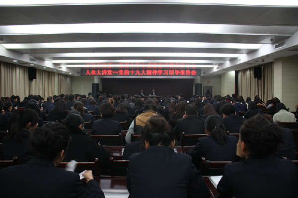 11月17日晚,人社局学习贯彻党的十九大精神宣讲报告会在人力资源市场八楼举行,邀请市委学习贯彻党的十九大精神宣讲团成员、市委宣传部副部长王春红作专题辅导。人社局全体干部职工260余人聆听了辅导报告。